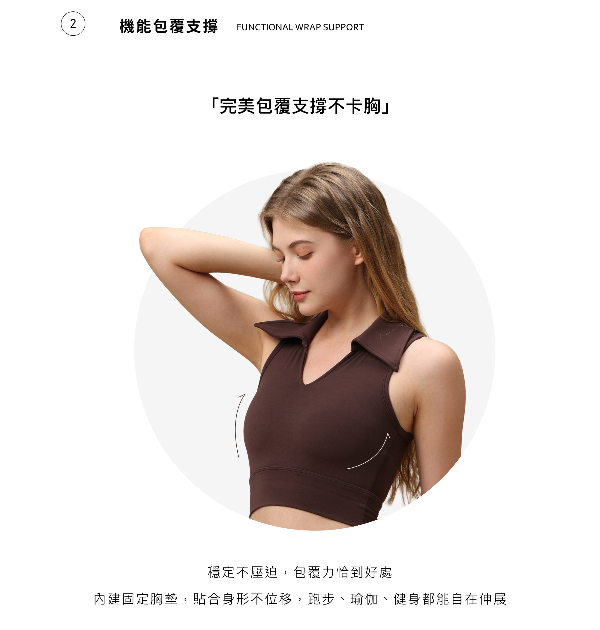 ● 機能包覆支撐|穩定不卡胸