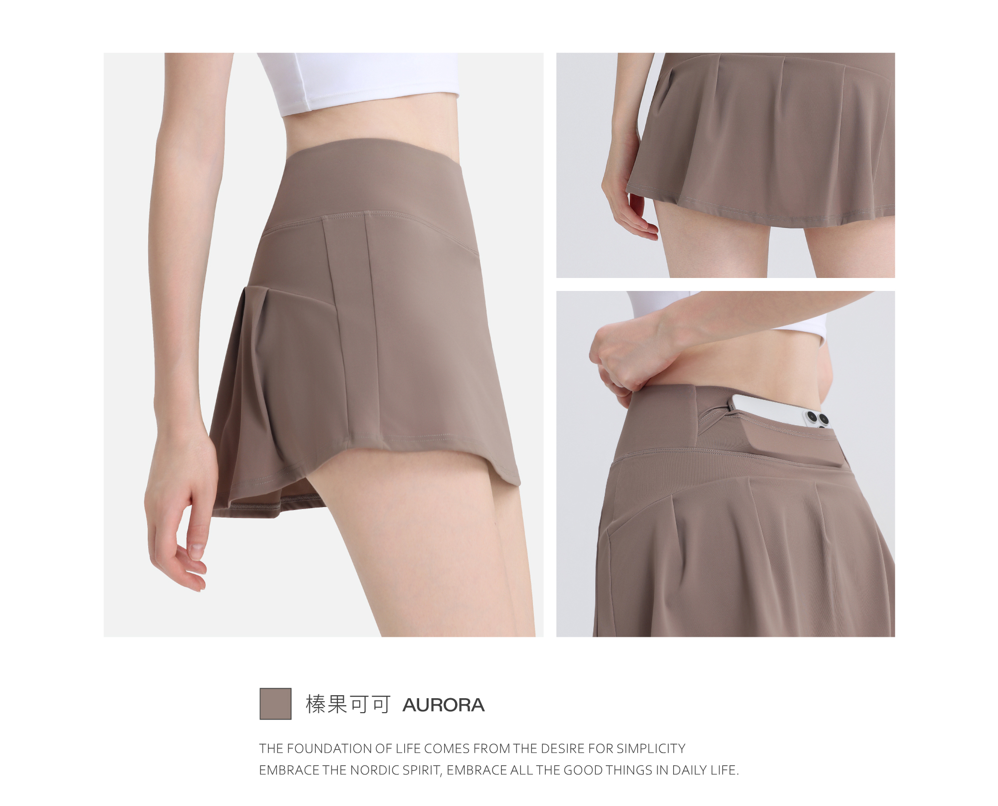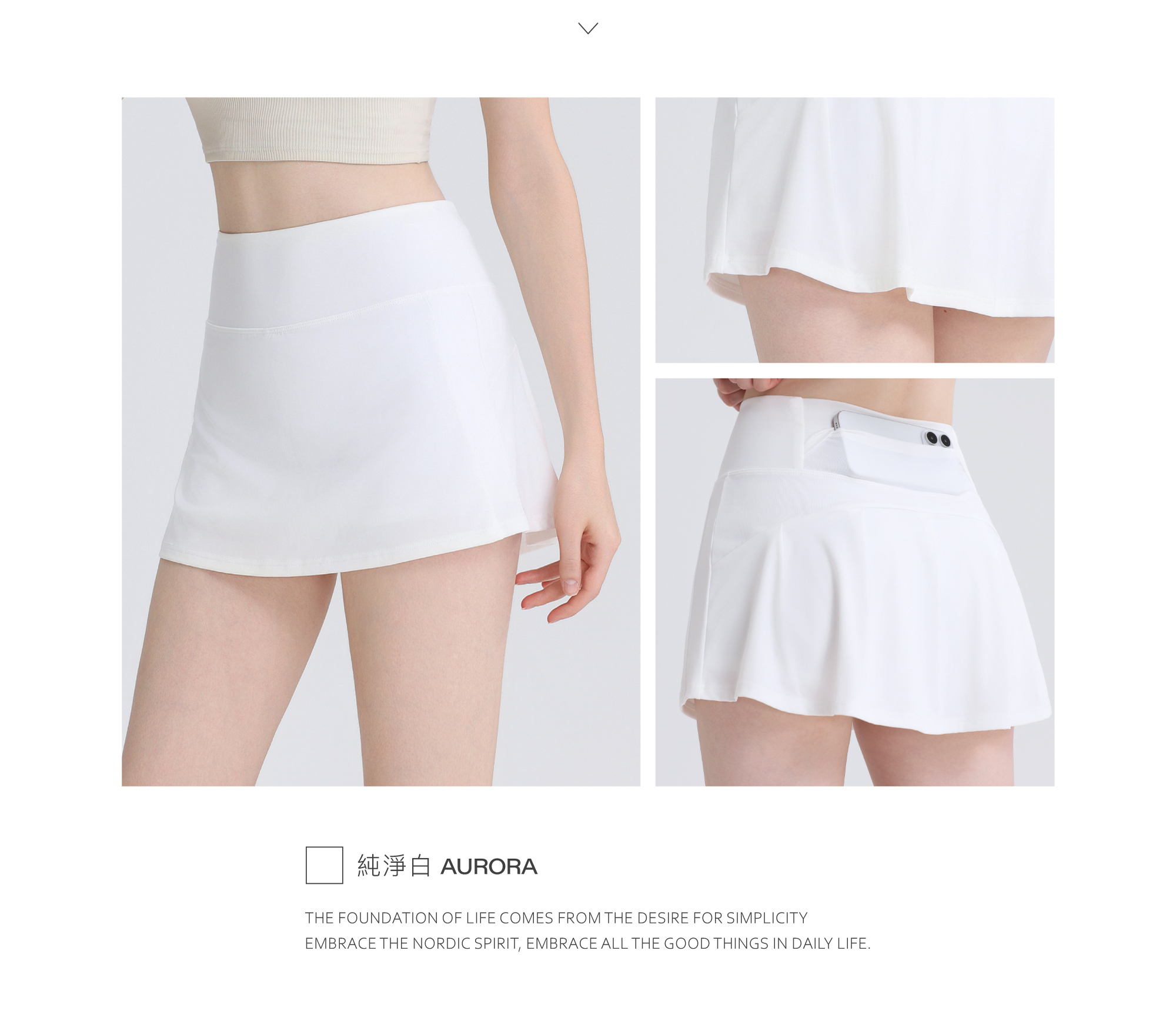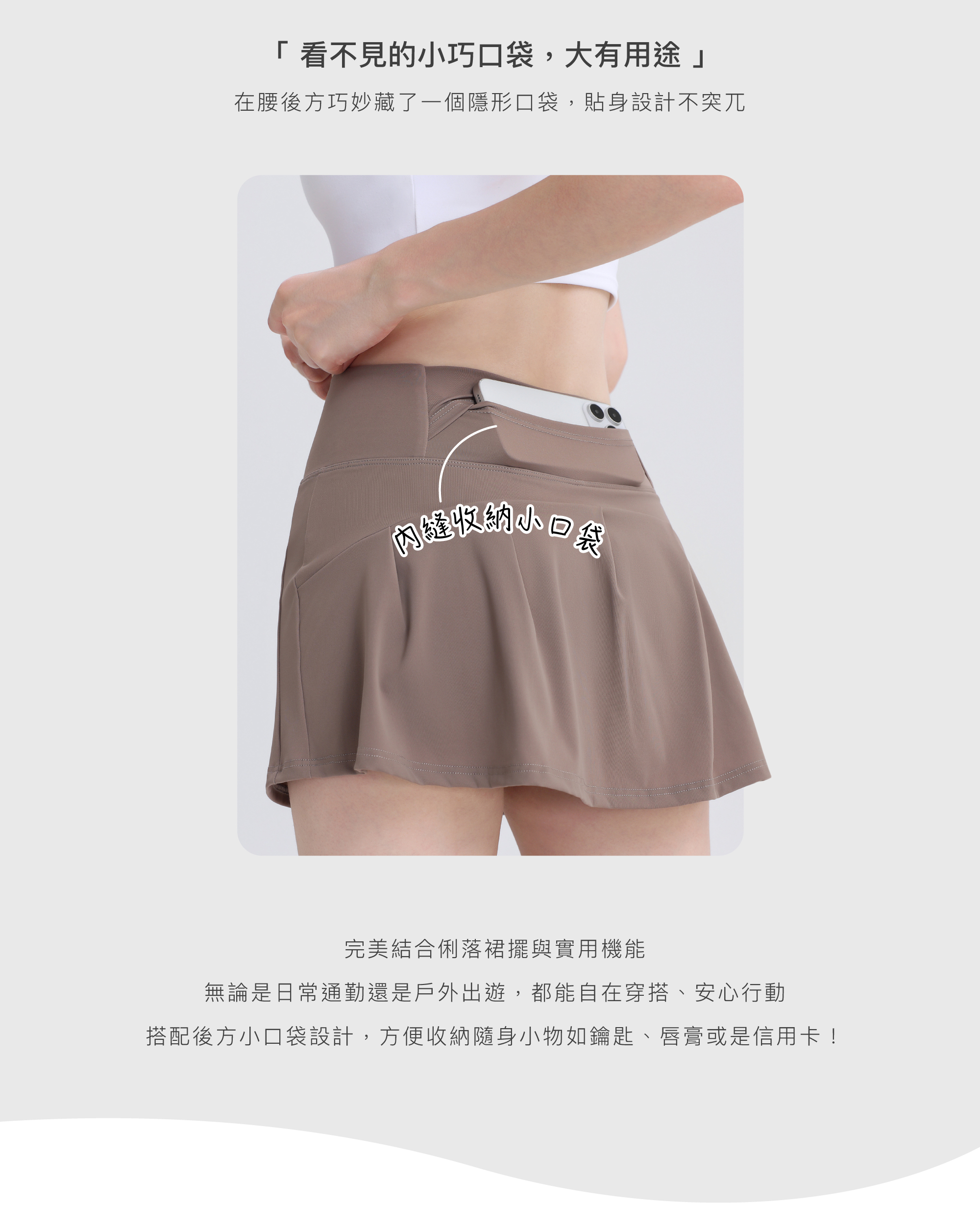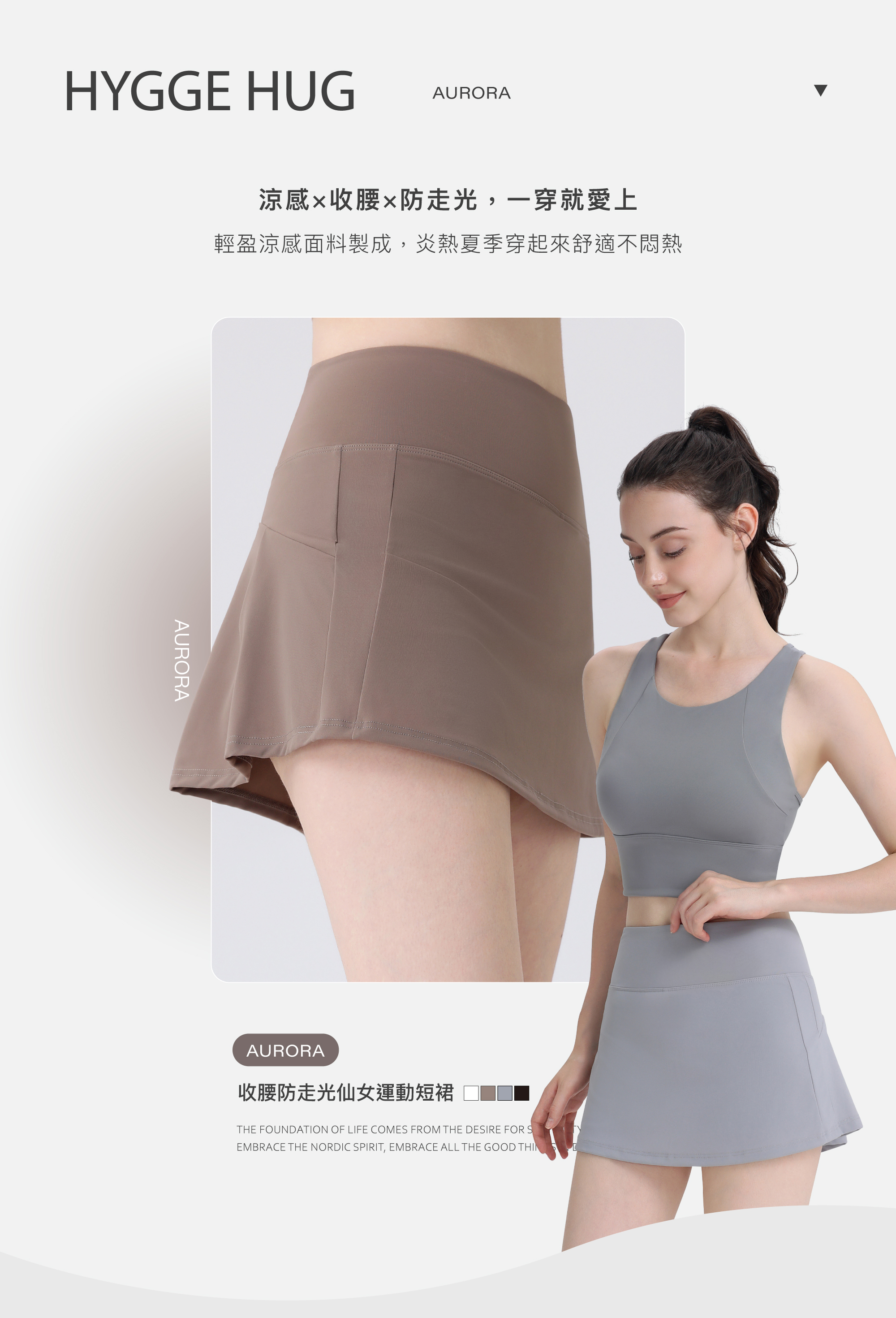 [Aurora] 收腰防走光隱形口袋仙女運動短裙,採用輕盈涼感面料,內建防走光安全褲,讓妳在運動中自在舒適。收腰設計凸顯腰部曲線,隱形口袋方便收納小物,無論是健身、跑步或日常穿搭,都能展現優雅與自信。
