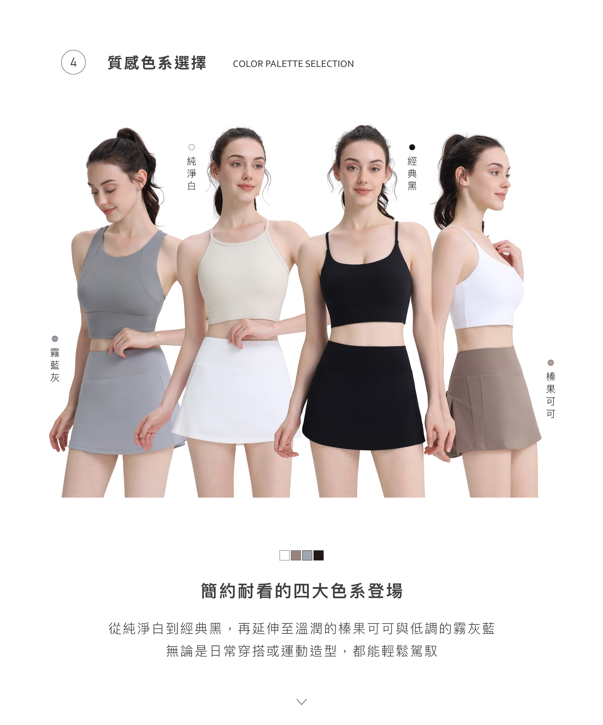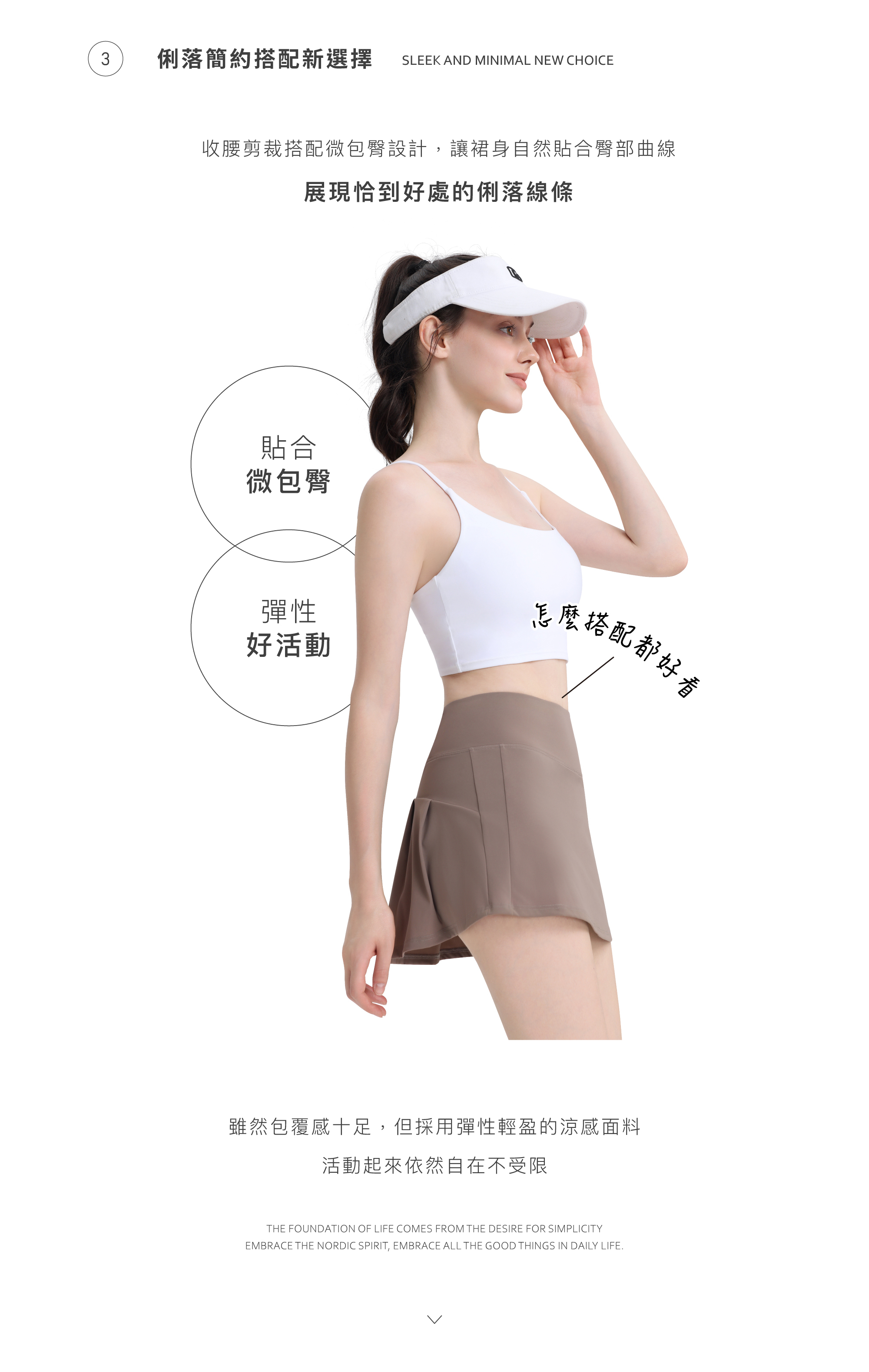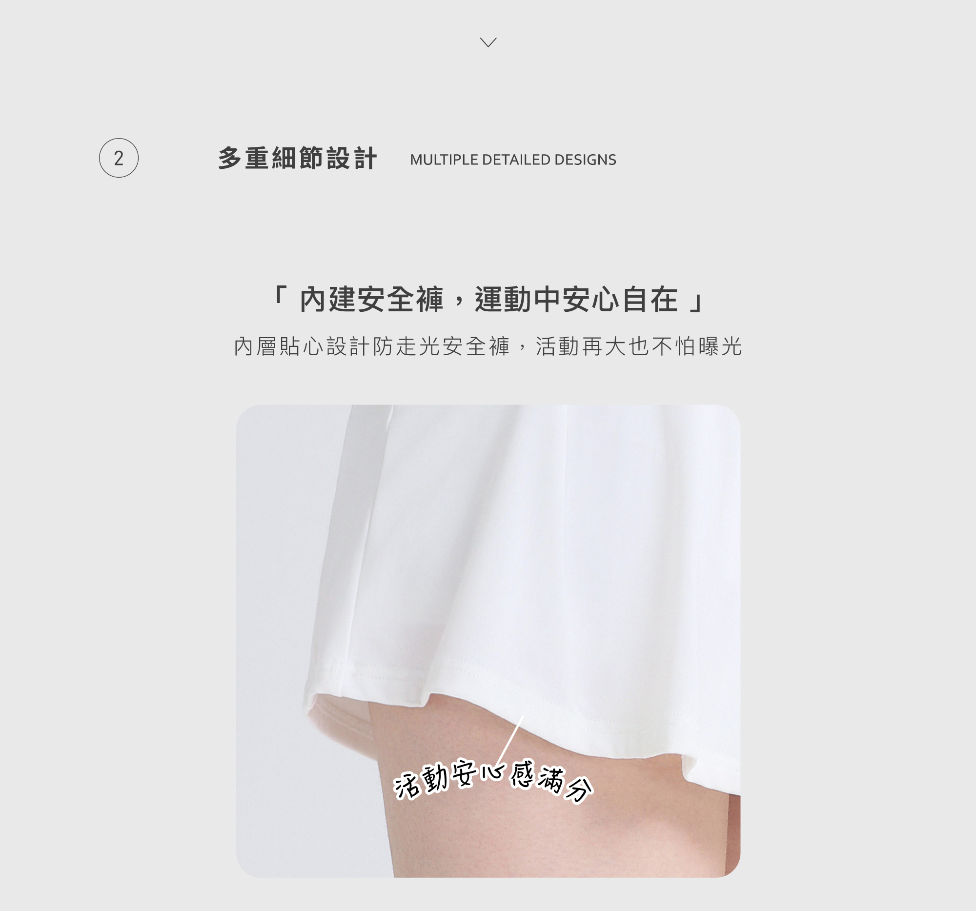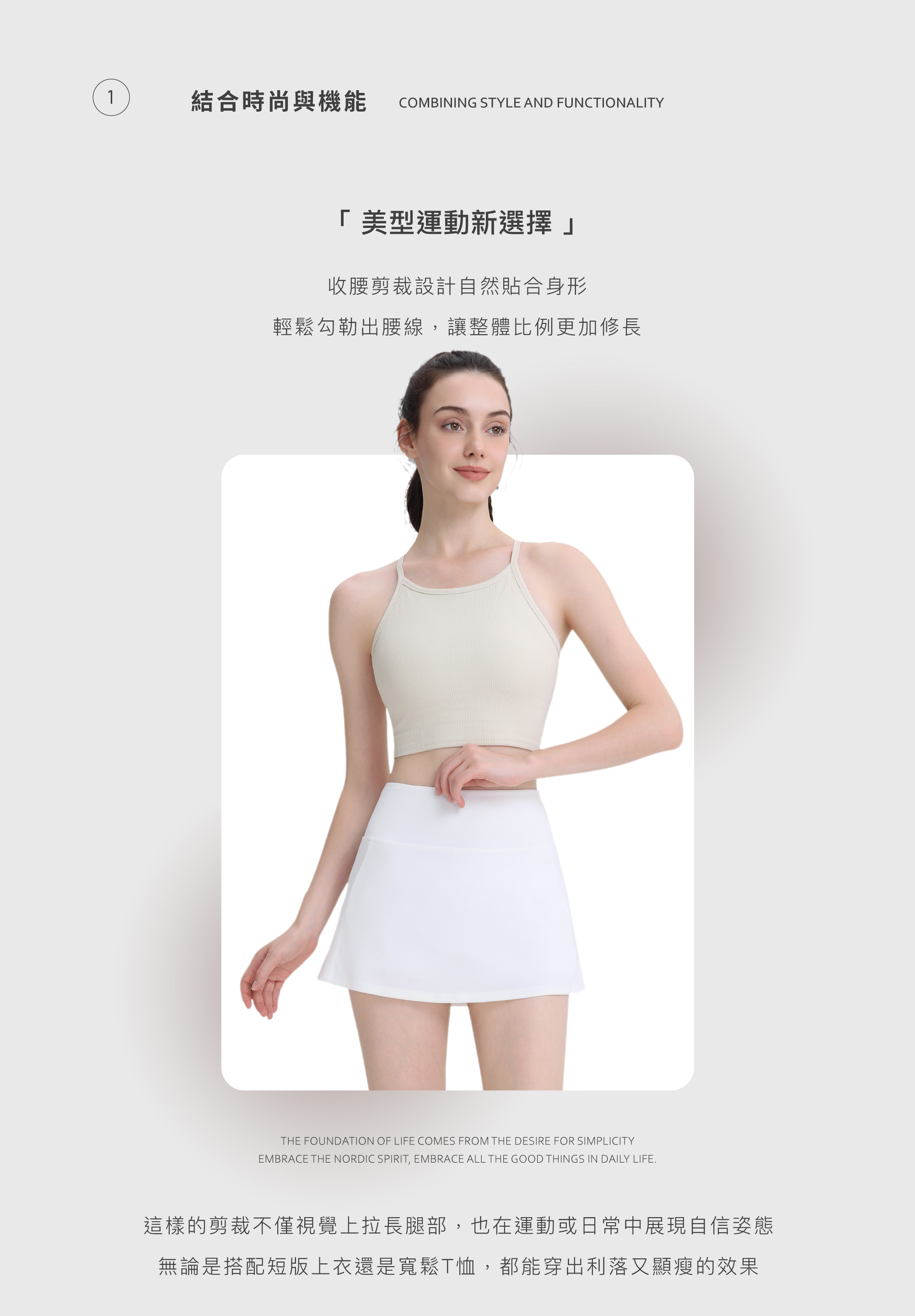 ● 防走光設計: 內建安全褲,運動中安心無憂