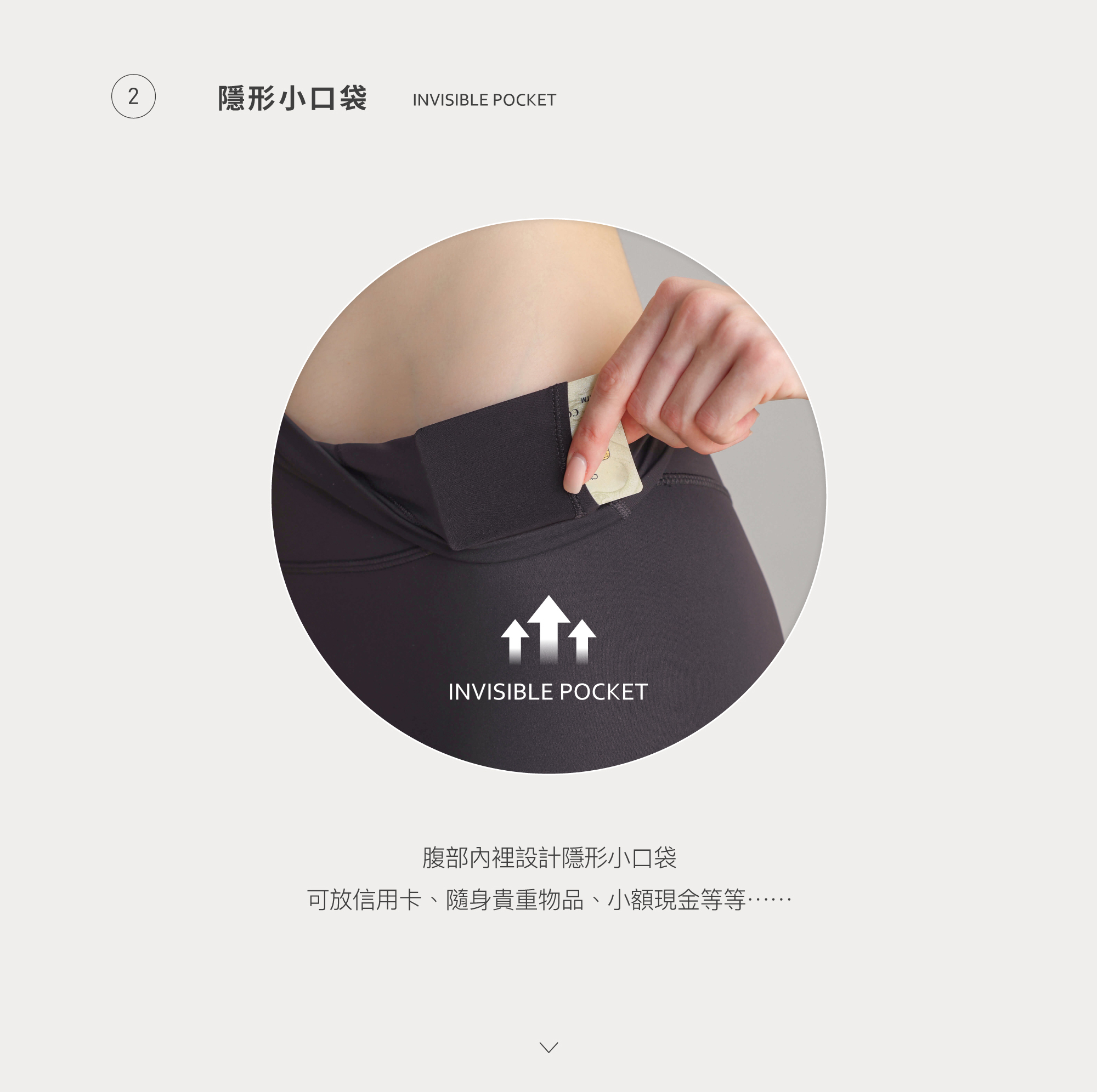 ● 腹部內裡設計隱形小口袋,可放信用卡、健身房會員卡