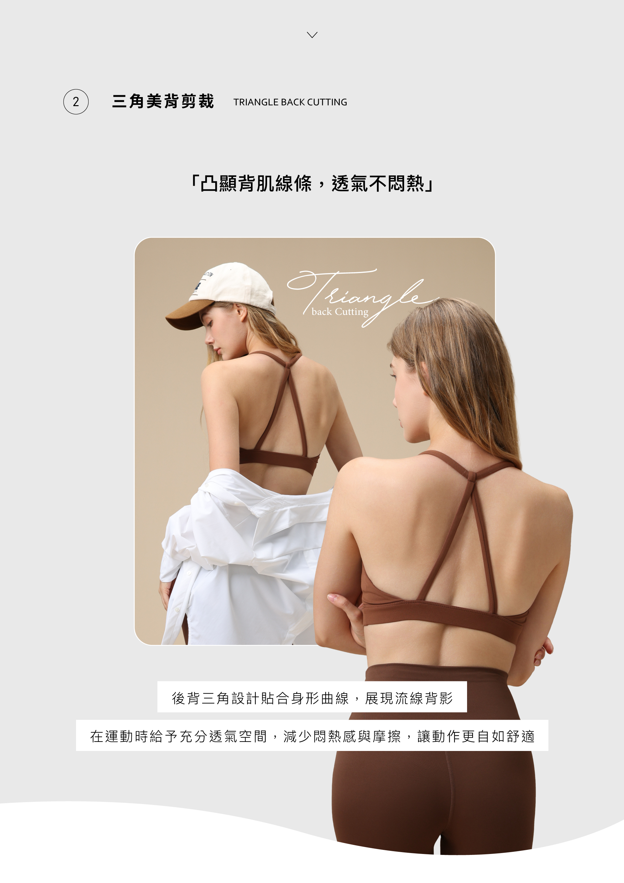 ● 三角美背剪裁|凸顯背肌線條,透氣不悶熱