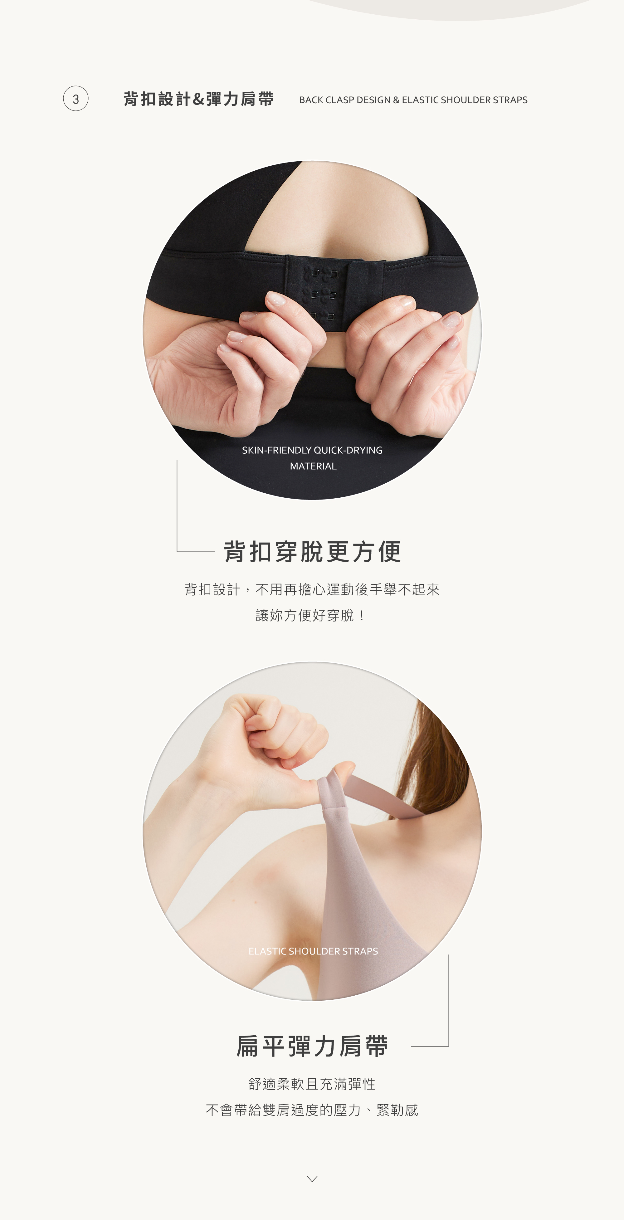 ● 背扣設計,不用再擔心運動後手舉不起來,讓妳方便好穿脫