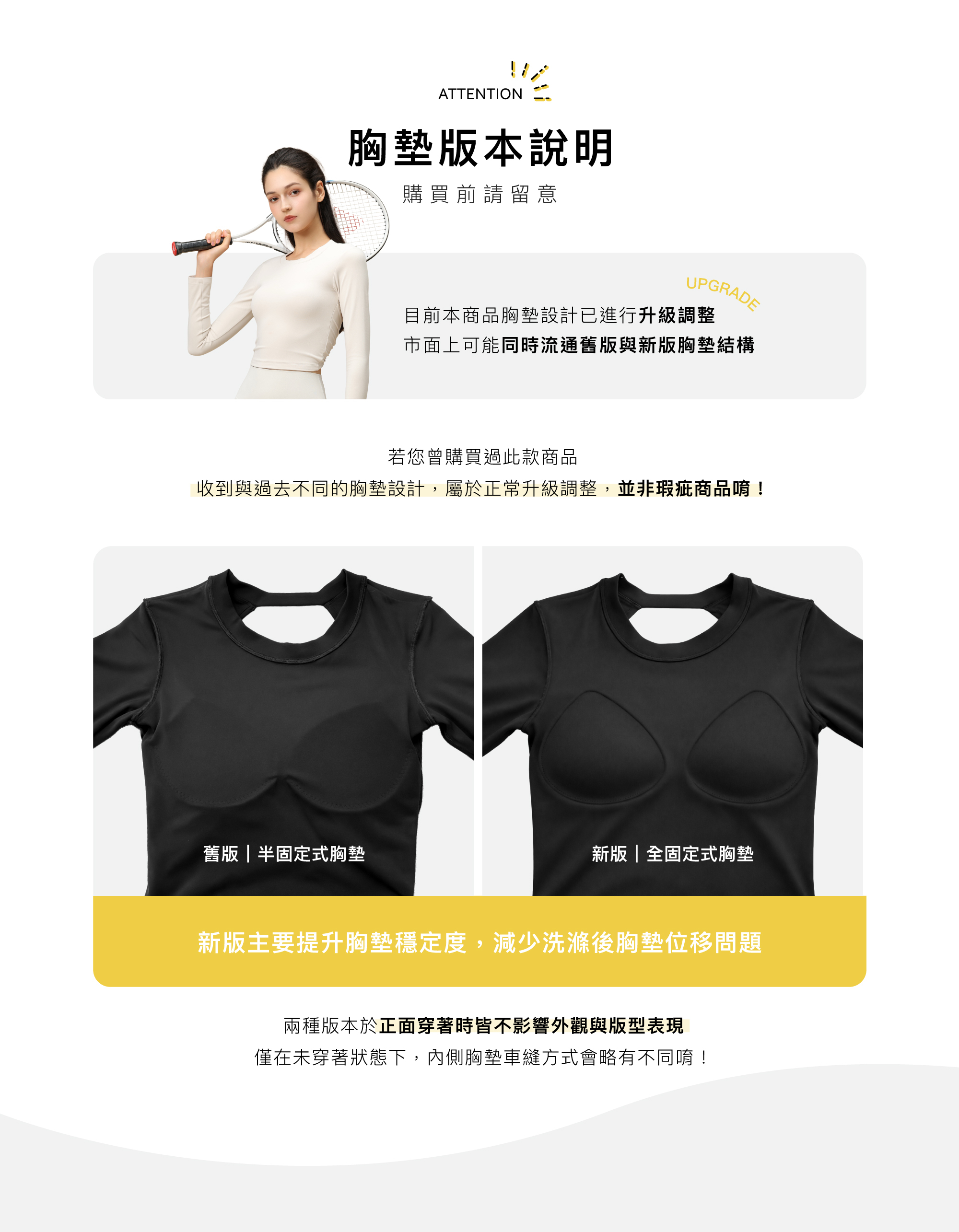● 貼身衣物(Bra top/Leggings/所有含胸墊之衣物/所有含內裡之褲子)恕不接受任何退換貨,下單前請三思