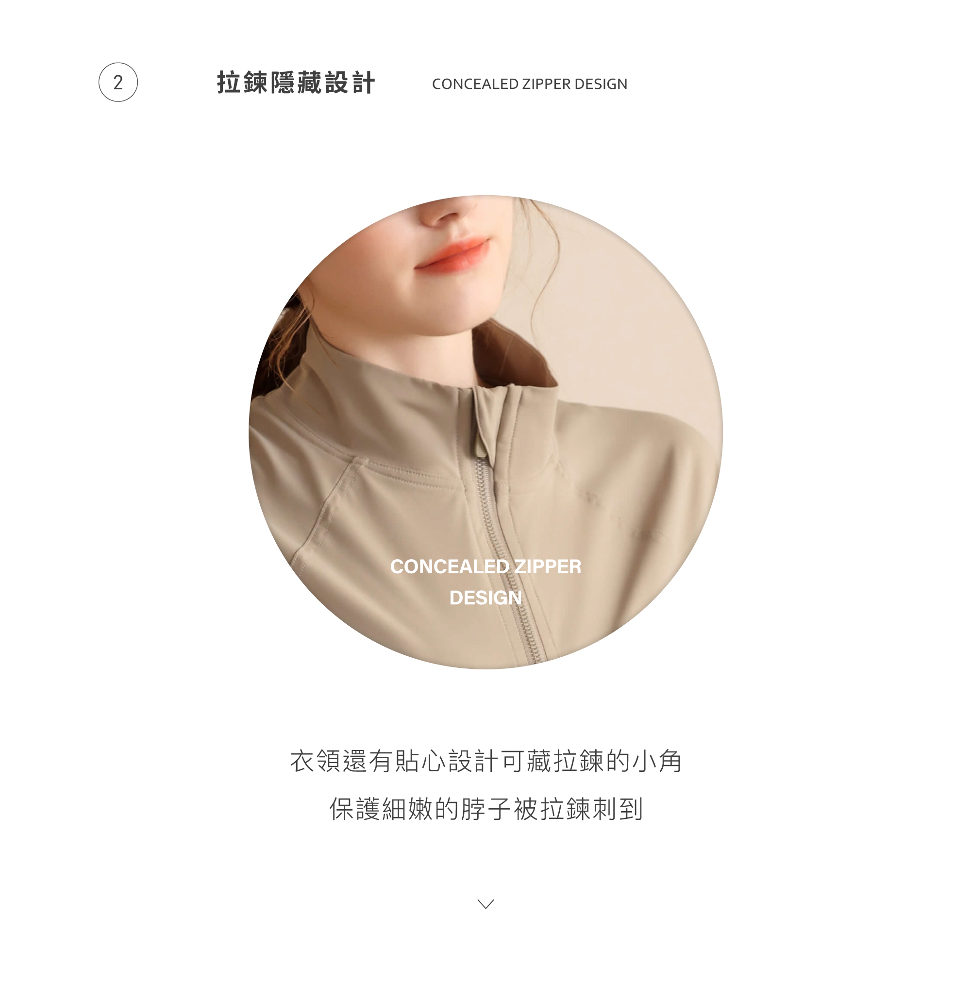 ● 大家都想要舒適的運動,特殊設計拉鍊不易滑落,衣領還有貼心設計可藏拉鍊的小角,保護細嫩的脖子被拉鍊刺到