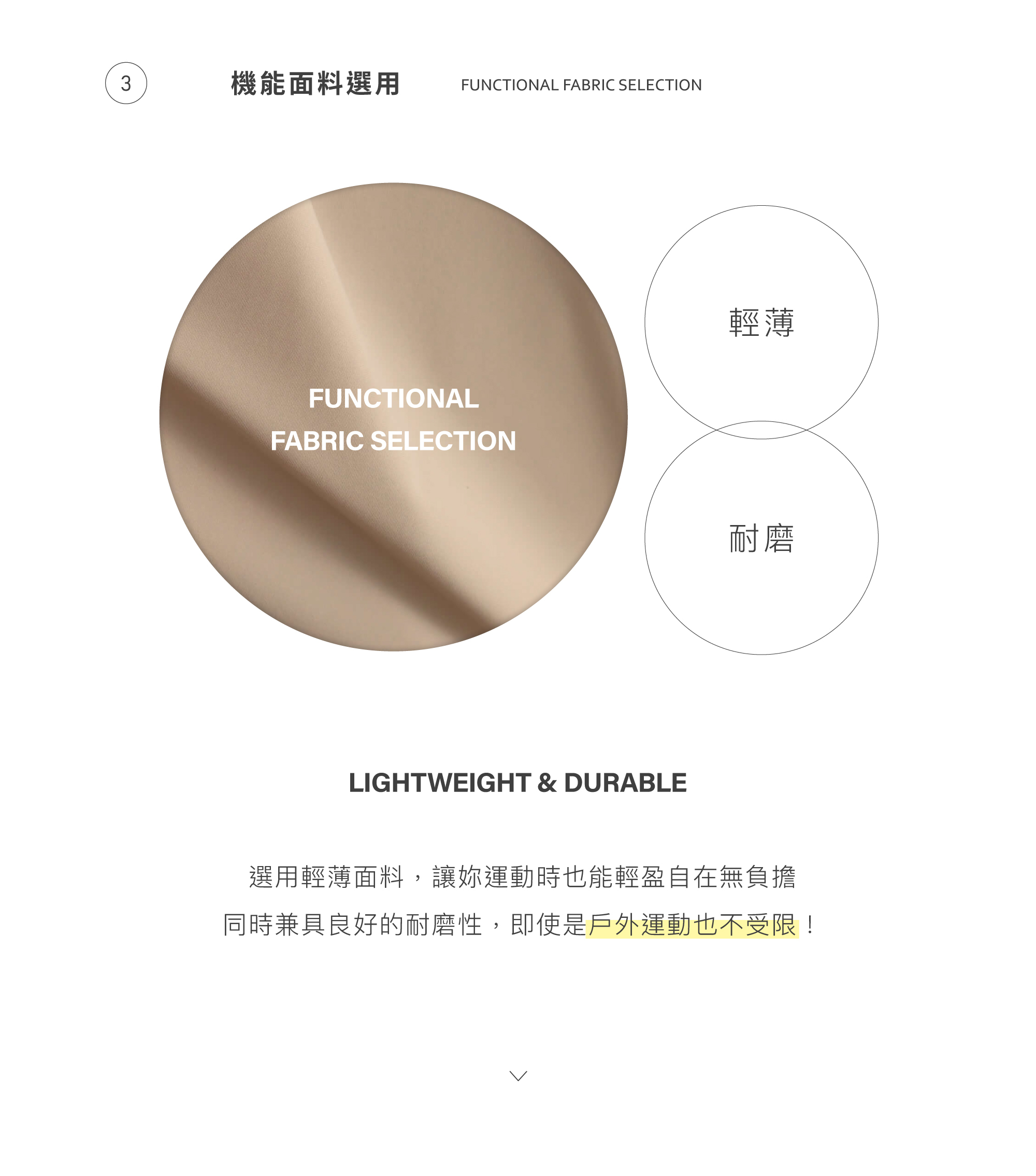 ● 輕薄高彈性布料,給您運動時最舒適的體驗
