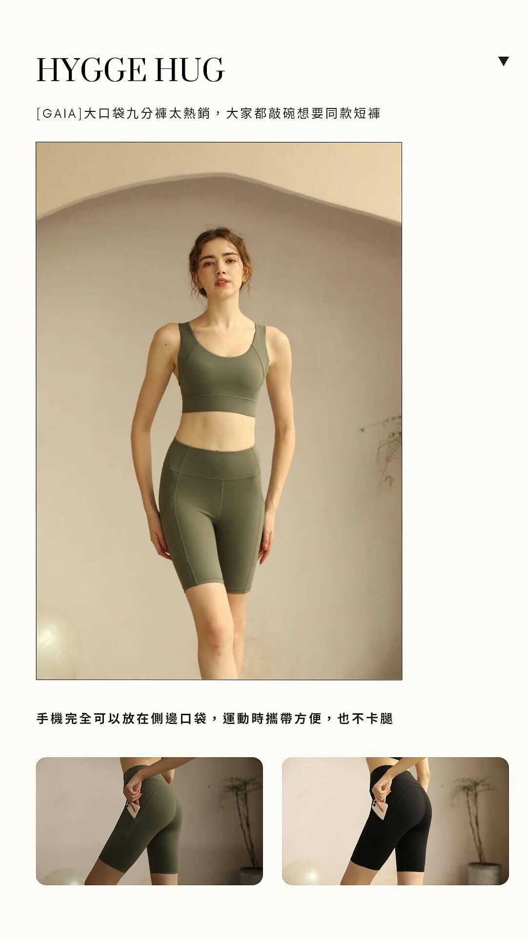 ● [Gaia]大口袋九分褲太熱銷,大家都敲碗想要同款短褲,這件四分褲採用同款布料,獨家四分褲版型,真的超顯瘦
