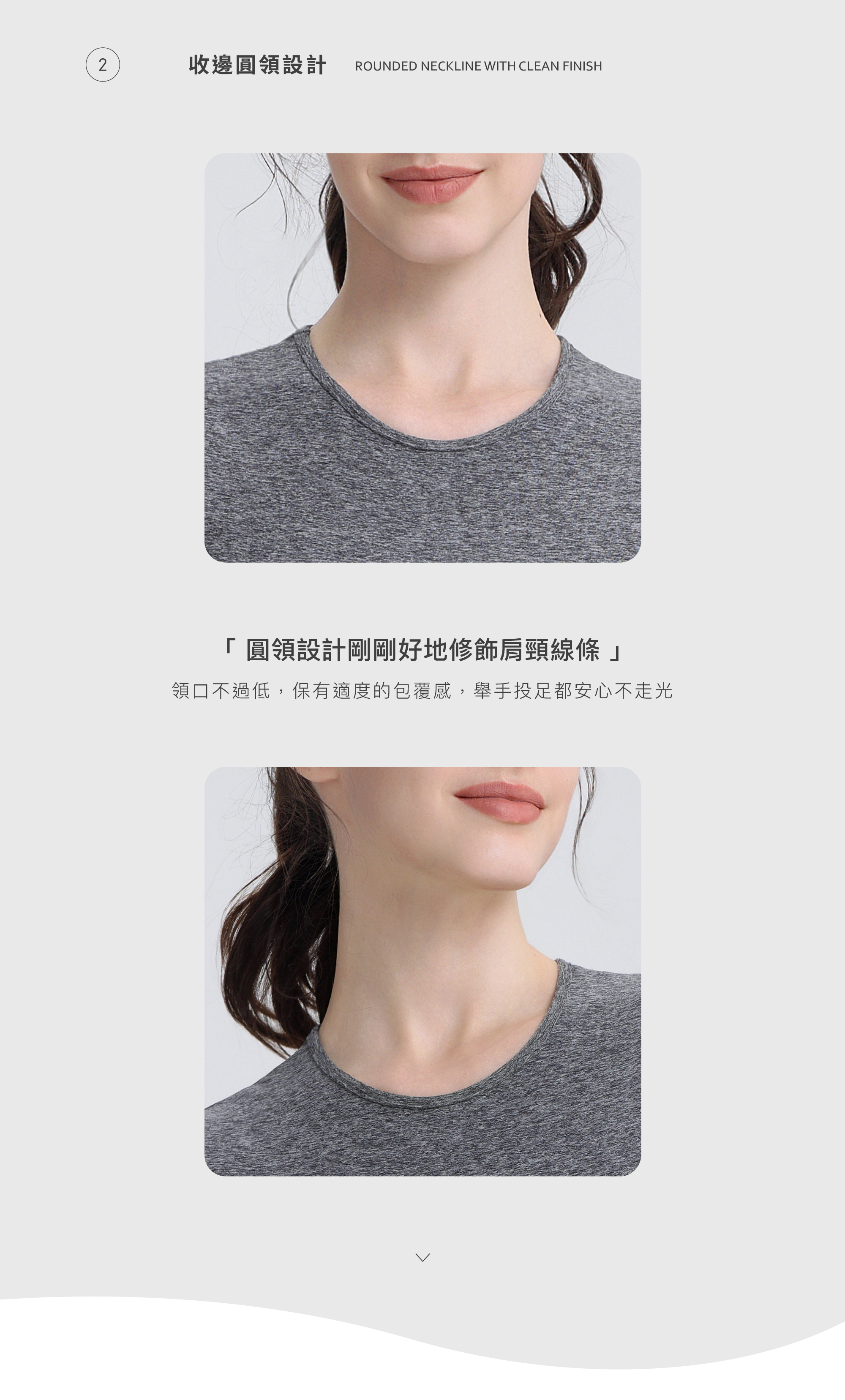 ● 圓領設計|修飾肩頸線條,領口不過低,安全感滿分