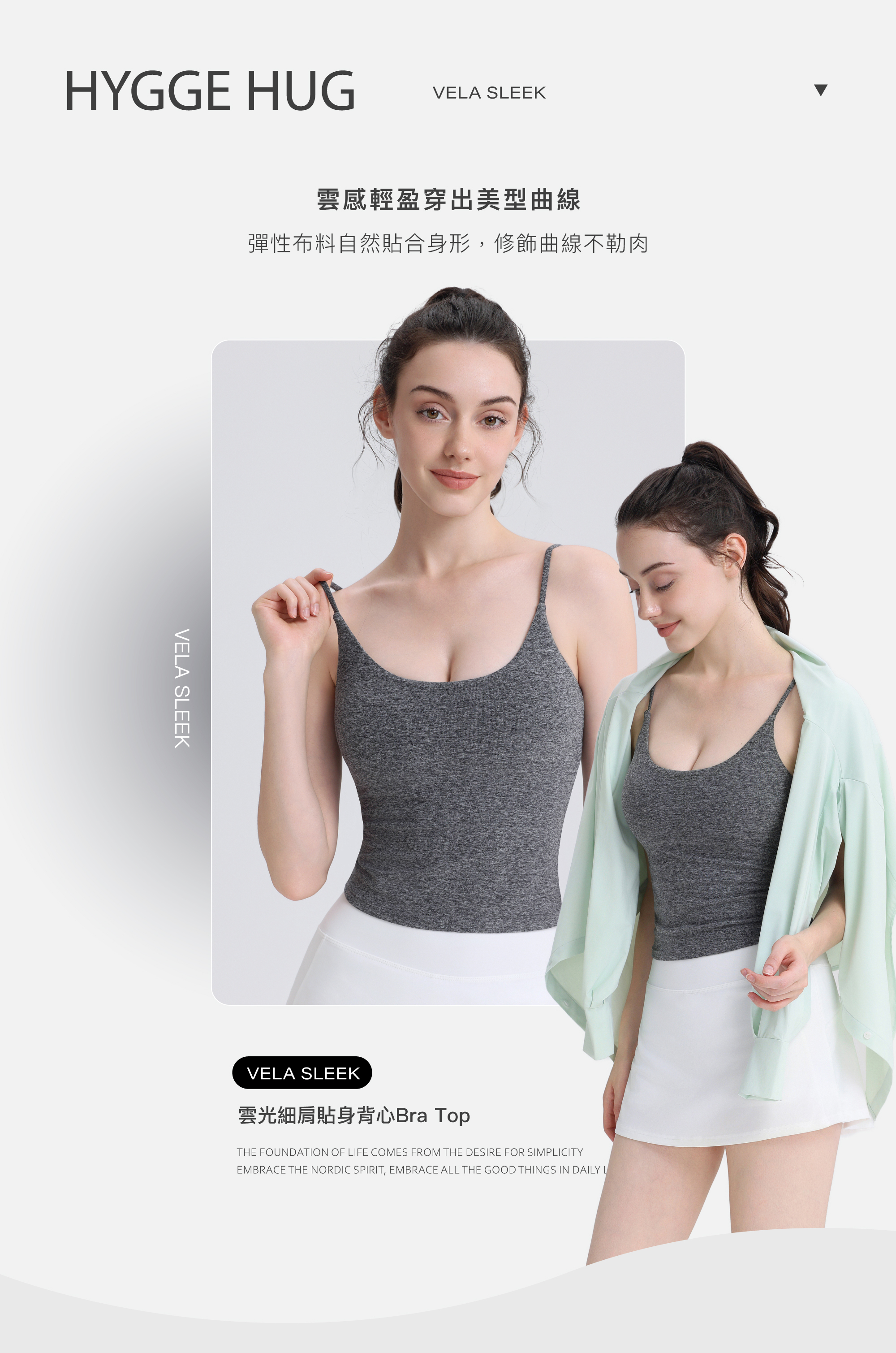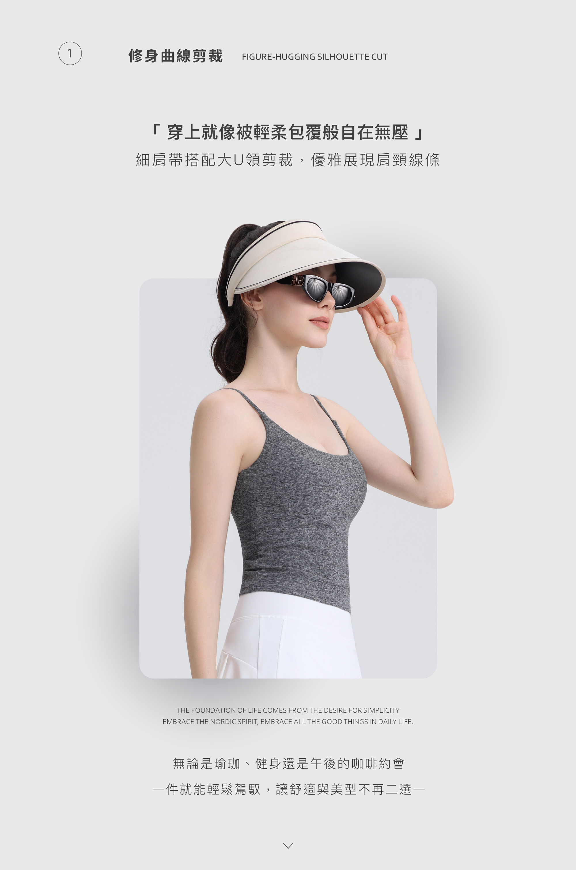 ● 細肩帶設計+大U領剪裁,修飾肩頸線條